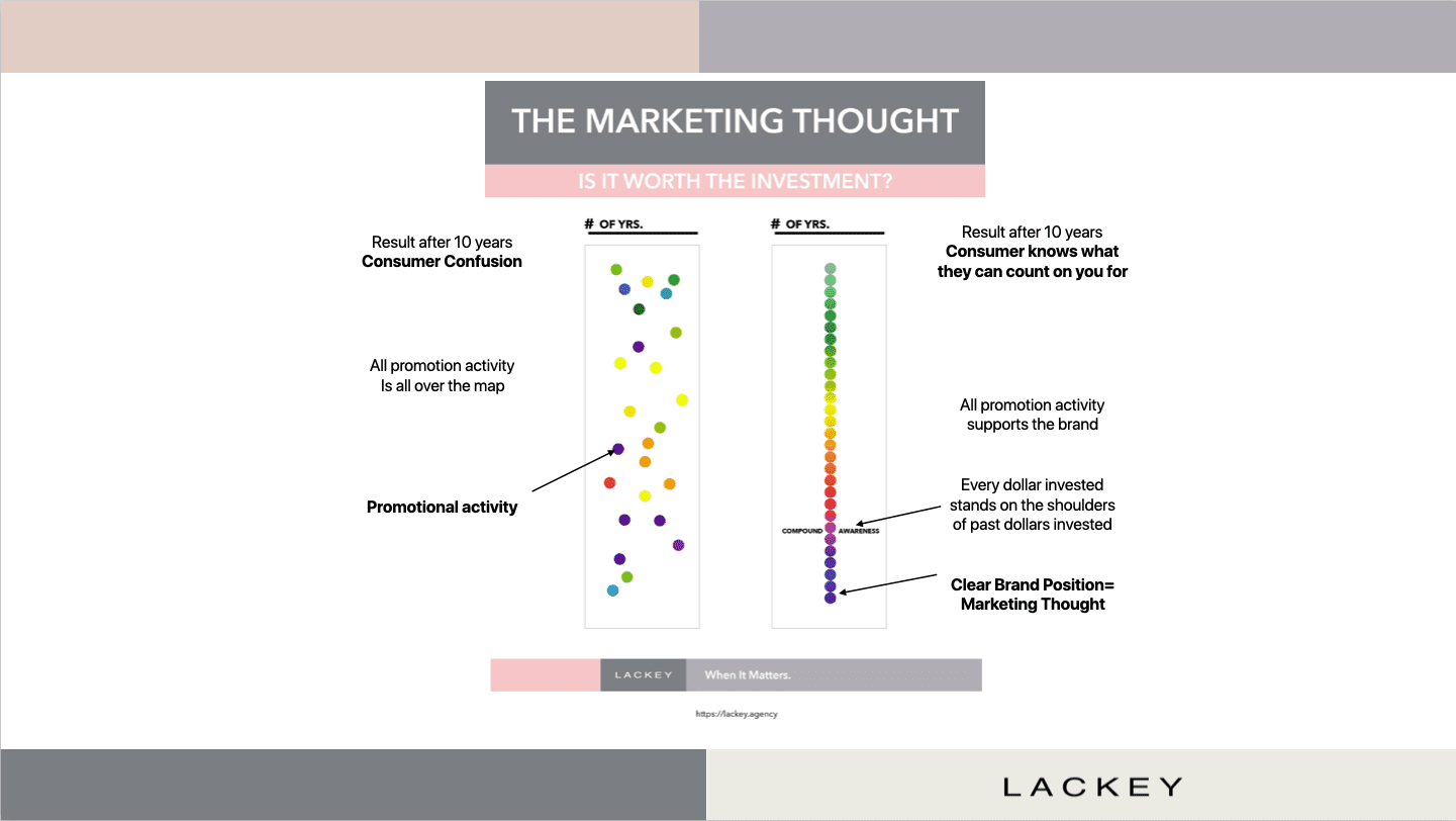 On the right: 10 years of marketing activity guided by a central marketing thought.